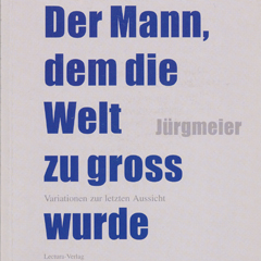 Jürgmeier: Der Mann, dem die Welt zu gross wurde - Variationen zur letzten Aussicht; Prosatexte, Essays, Kolumnen und Gedichte aus den Jahren 1986 - 2001, Nürnberg: Lectura-Verlag, 2001, ISBN: 3-934772-35-8